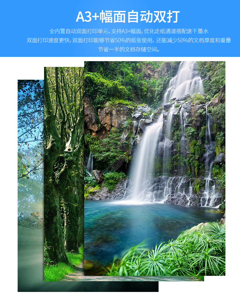支持纸张尺寸 A3+ 329 × 483 毫米,A3 297 × 420 毫米,B4 257 × 364 毫米,A4 210 × 297 毫米,A5 148 × 210 毫米,A6 105 × 148
